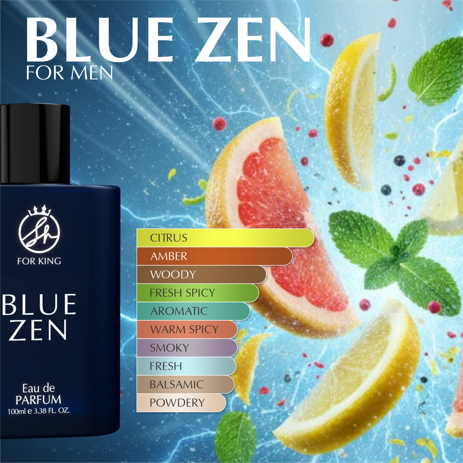 A sophisticated, modern fragrance that opens with a burst of fresh,
