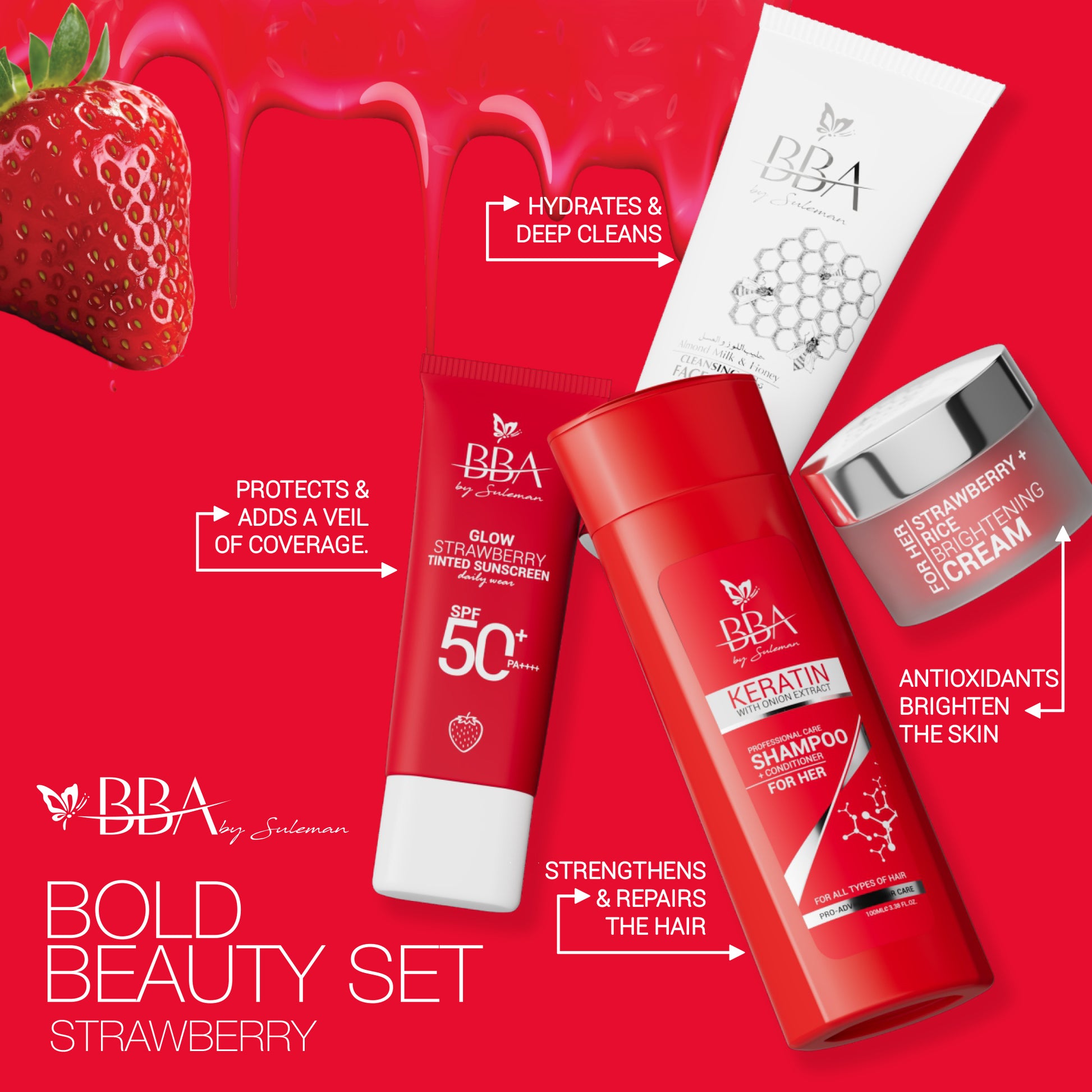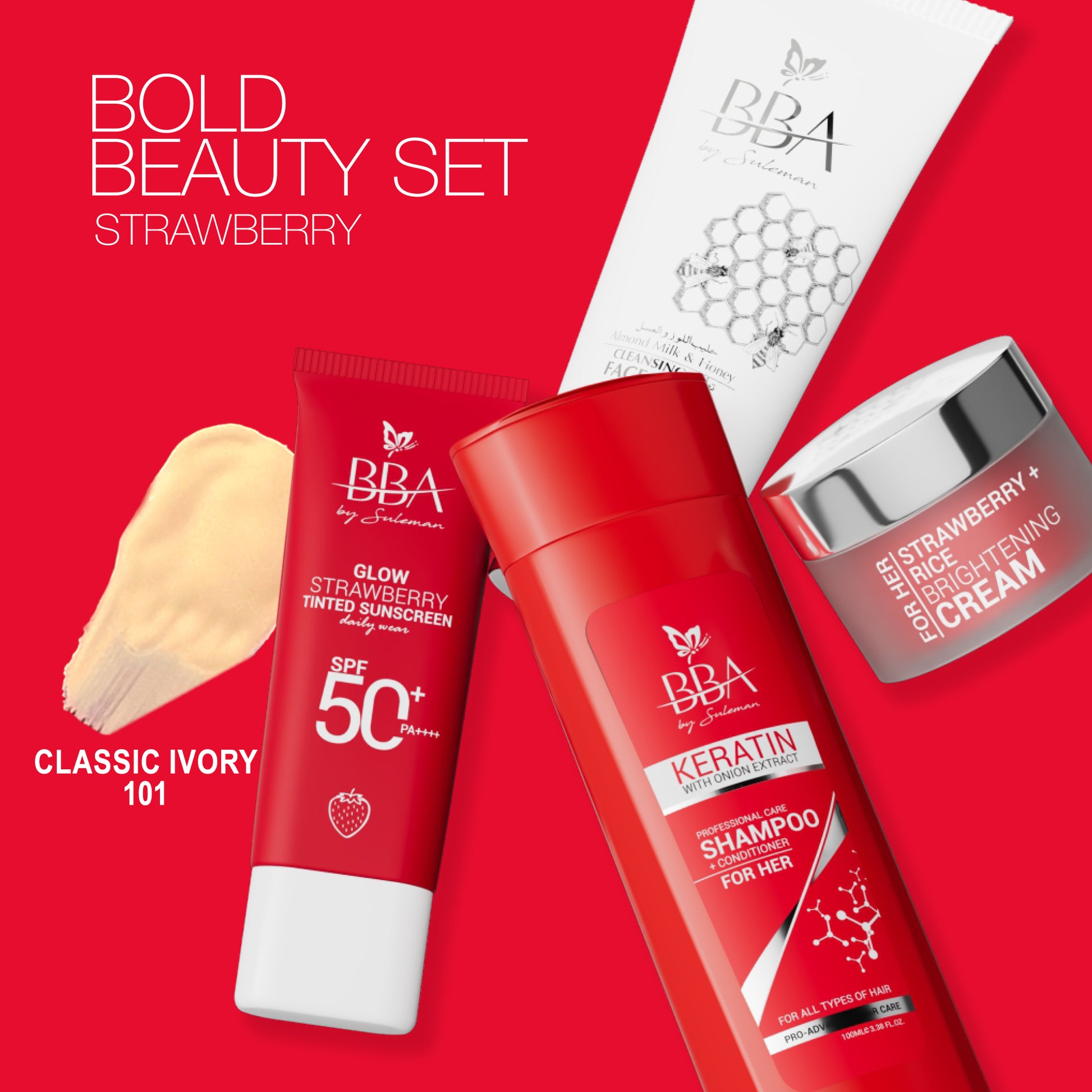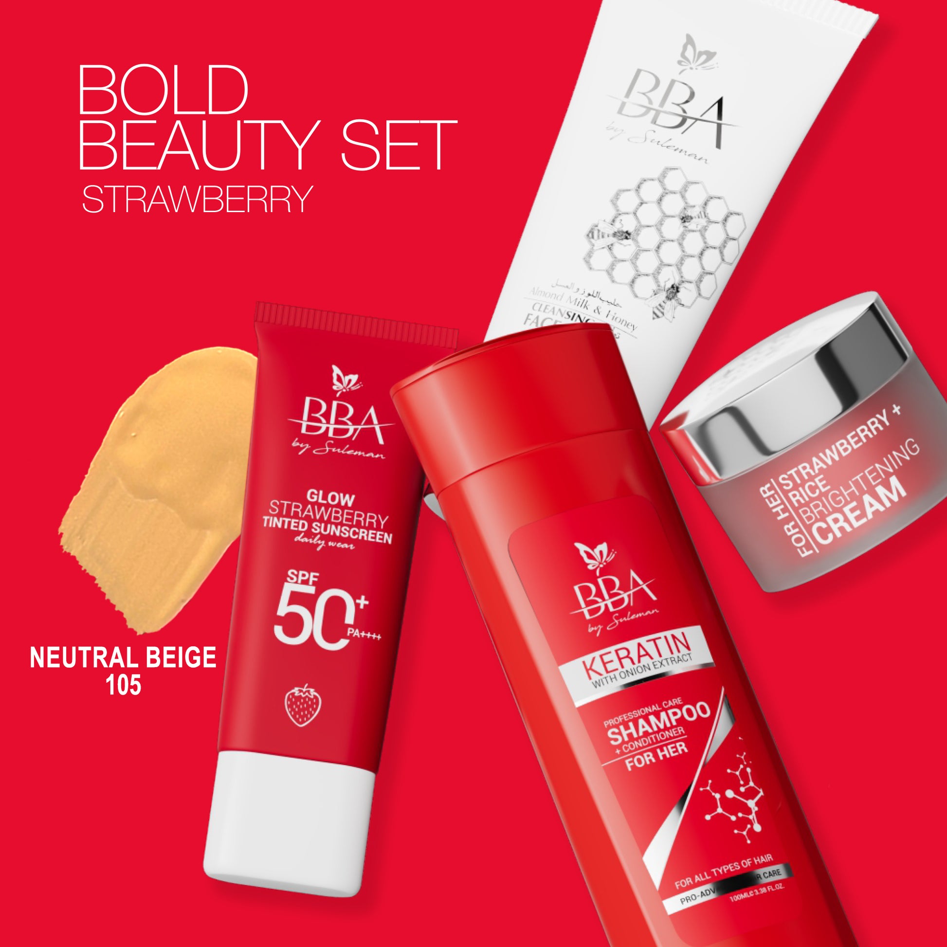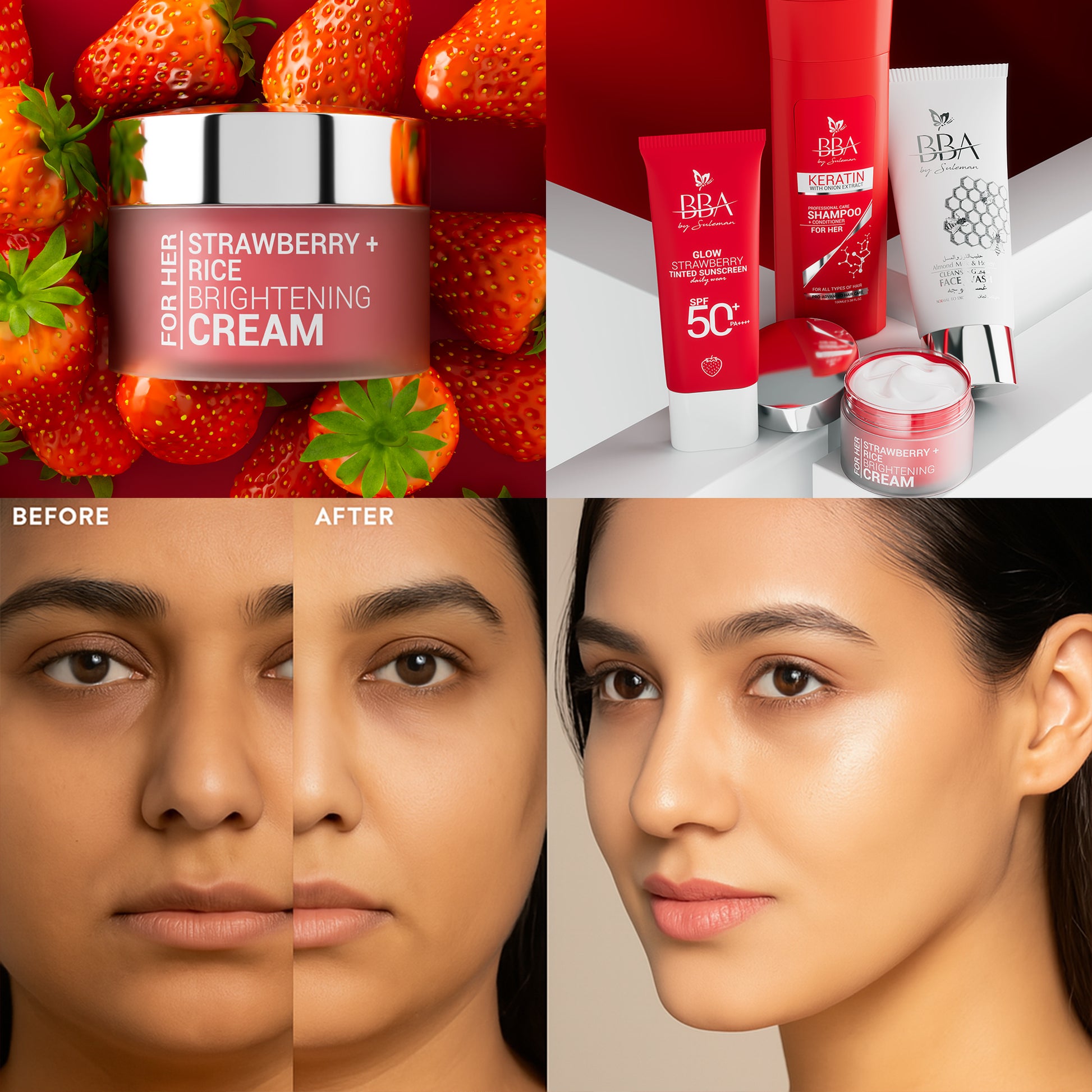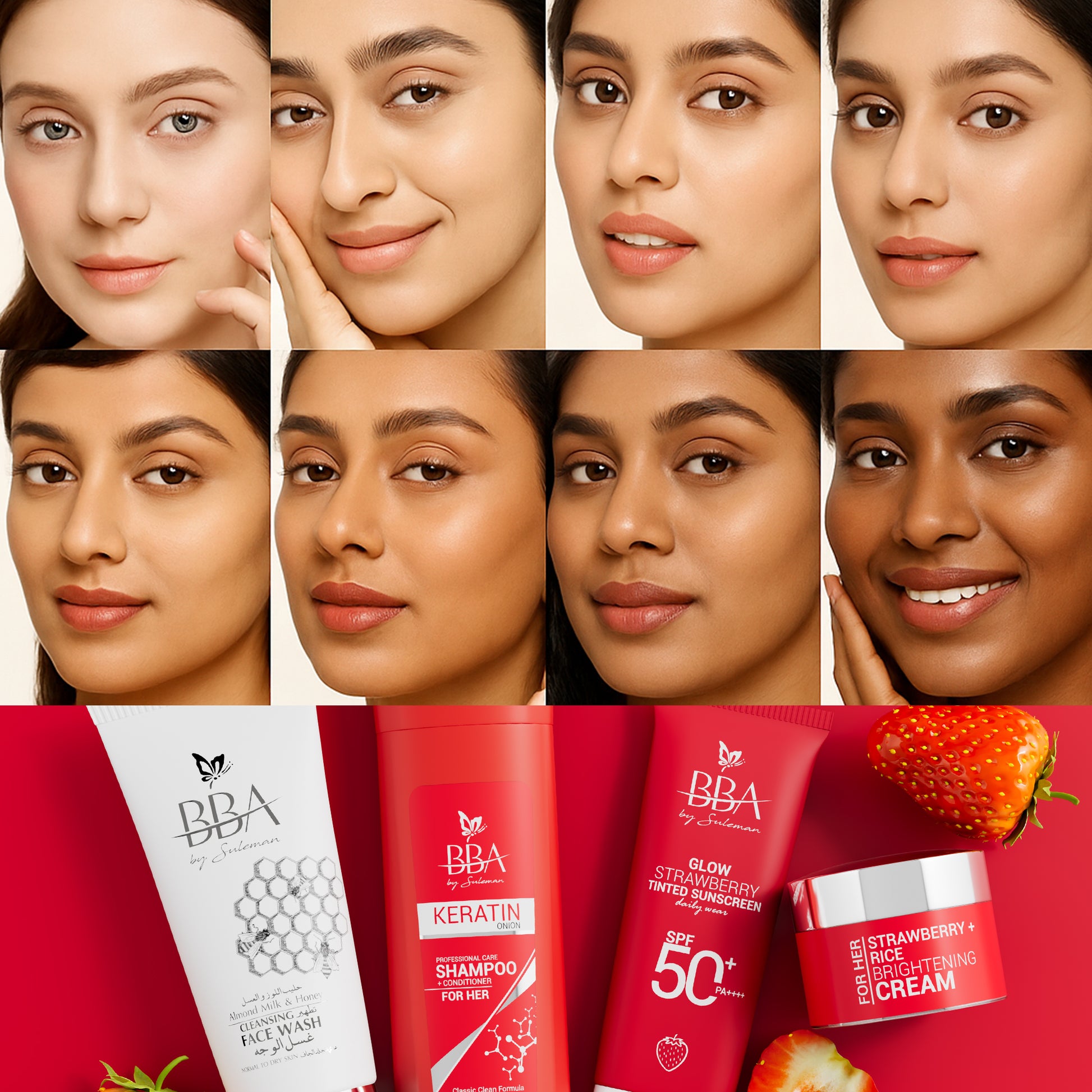 2 fingers’ length amount of the Strawberry Tinted Sunscreen onto the